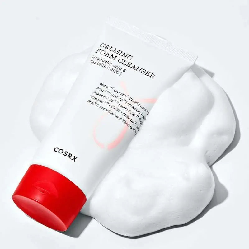 COSRX AC Calming Foam Cleanser er en mild men effektiv rens som har beroligende egenskaper. Nøkkelingrediensene er BHA salisylsyre som gir lett peeling og laurinsyre fra kokosnøttolje som er antibakteriell og antiinflammatorisk.